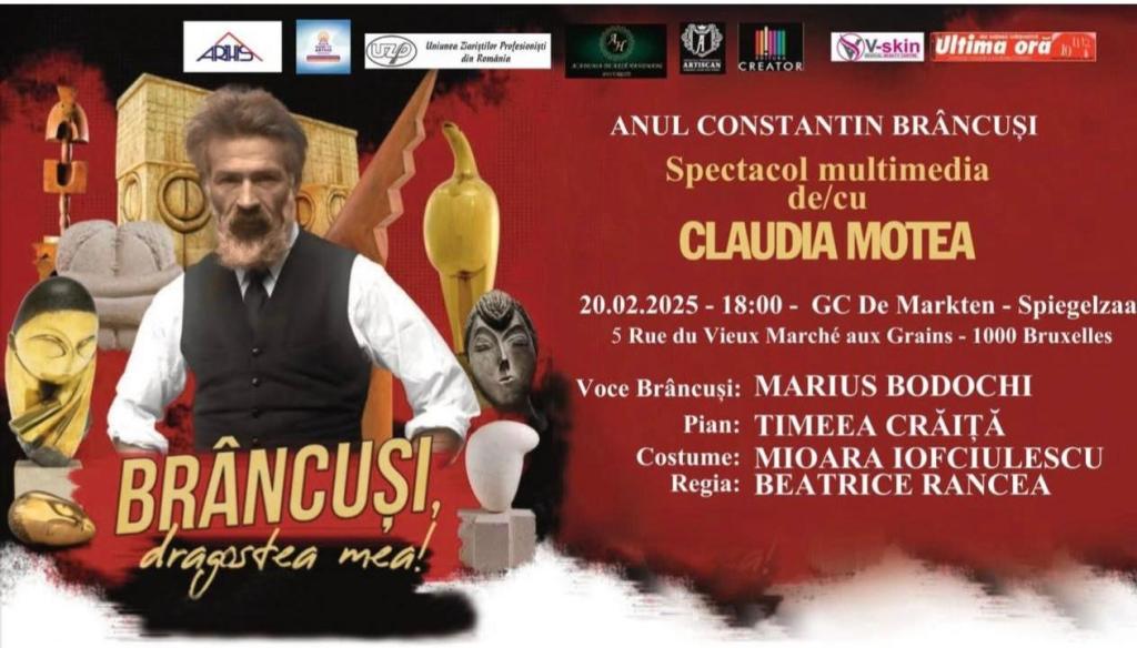 Spectacolul „BRÂNCUȘI, DRAGOSTEA MEA!”, aflat în plin turneu național și internațional, pornește spre Bruxelles, unde va fi prezentat pe 20 februarie 2026, în eleganta Sală a Oglinzilor (Spiegelzaal) din cadrul GC De Markten.