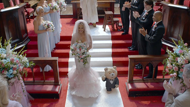 Responsabil de toată nebunia asta “ursărească” este Seth MacFarlane, regizor, co-scenarist şi vocea şturlubaticului Ted, cel care orchestrează toată acţiunea zăpăcificantă şi ne face –pe alocuri – să râdem sincopat! Şi dacă nici publicul şi nici criticii nu prea au apreciat umorul eliptic din A Million Ways to Die In The West, Ted a fermecat pe toată lumea şi a deschis calea acestui scenariu trăznit şi fresh. Comicul este aproape în totalitate de limbaj, glumele ridiculizând tarele societăţii americane într-un mod acid, subversiv , nelăsând nici o urmă de echivoc asupra felului în care este privită societatea de consum şi…consumatorii. Dar ne-am obişnuit deja cu stilul lui Seth, incisiv, crud şi fără perdea- dar care place şi surprinde prin citatele din filmografia clasică şi aparitiile cameo ale unor actori sau oameni de media celebri. Si apropos de clasicism, m-a surprins şi m-a cucerit genericul de start în care se aduce un omagiu perioadei de glorie a musicalului american, cu montări spectaculoase, coregrafii de excepţie şi sincroane a zeci de dansatori într-un decor grandios: tortul de la nunta lui Ted! Nu vreau să vă stric plăcerea , aşa că nu dezvălui nimic mai mult!