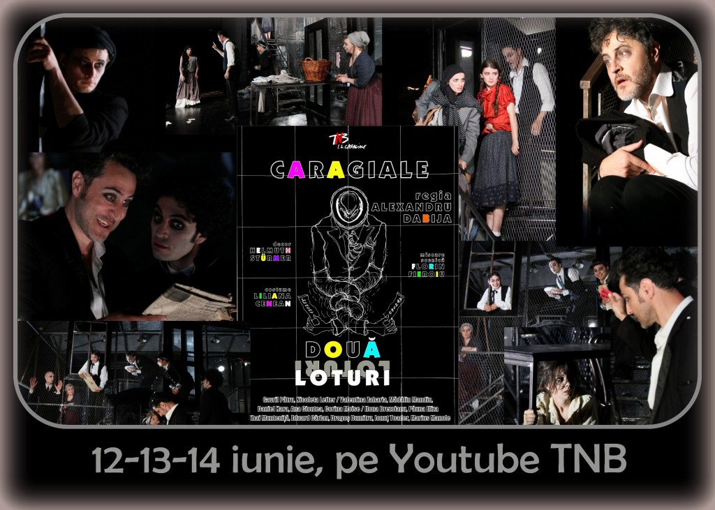 - Vineri 12 iunie, sâmbătă 13 și duminică 14 iunie: DOUĂ LOTURI, spectacolul realizat de regizorul Alexandru Dabija după nuvela cu același titlu a lui Caragiale, va fi prezentat on-line, pe canalul de Youtube.