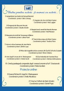 Programul „Teatru pentru actori… și numai cu actori…” va cuprinde următoarele proiecte: