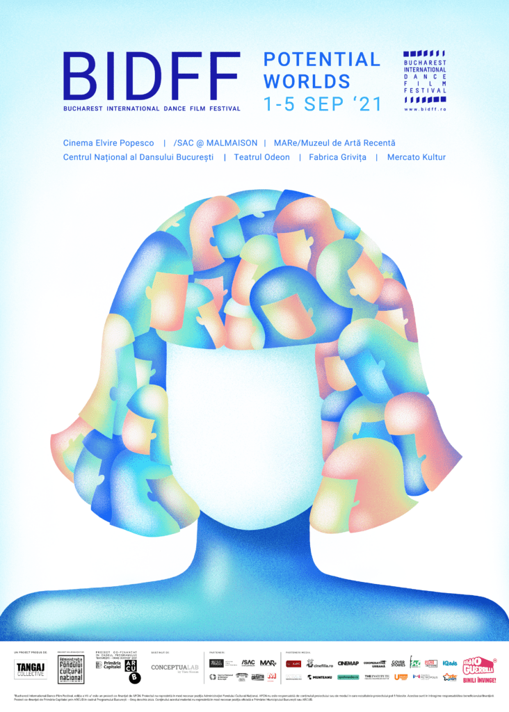 “Bucharest International Dance Film Festival, ediția a VII-a” este un proiect co-finanțat de Primăria Capitalei prin ARCUB în cadrul Programului București – Oraș Deschis 2021. Pentru informații detaliate despre programul de finanțare al Primăriei Municipiului București prin ARCUB, puteți accesa www.arcub.ro.