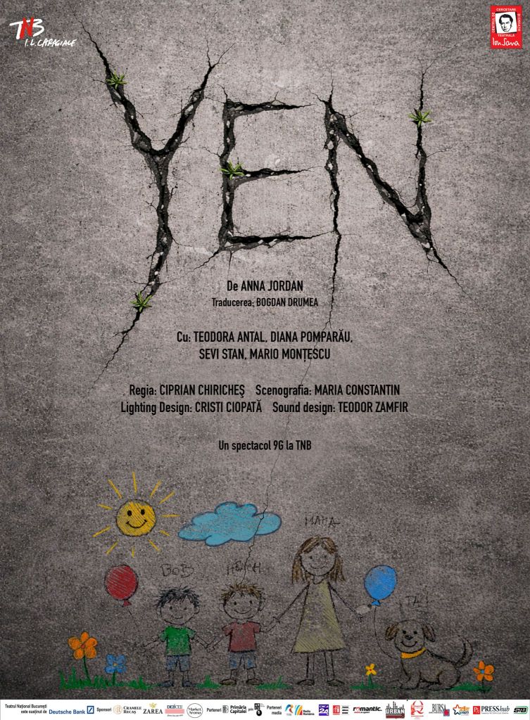Teatrul Național„I. L. Caragiale” din București anunță o nouă premieră în cadrul Programului 9G la TNB, dedicat tinerilor artiști independenți:Yen de Anna Jordan, în regia lui Ciprian Chiricheș, scenografia Maria Constantin, cu Teodora Antal, Diana Pomparău, Sevi Stan, Mario Monțescu în distribuție. Premiera va avea loc duminică, 19 aprilie, ora 19.00, la Sala Mică.