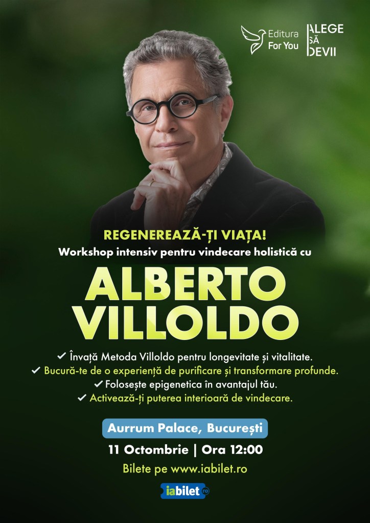 Supranumit „Indiana Jones al lumii spirituale” de New York Times, dr. Alberto Villoldo vine în România în 11 octombrie 2025 pentru „Regenerează-ți viața”, workshop intensiv de vindecare holistică, în care vei trăi experiența unei purificări și transformări profunde și în care îți vei spori puterea de a trăi simțindu-te și arătând mai tânăr decât vârsta cronologică.